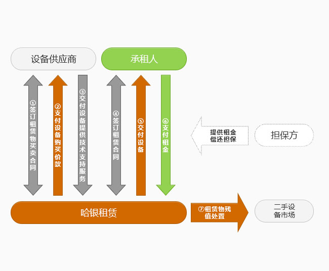 產品定義:哈銀租賃根據承租人的選擇,向設備制造商購買設備,并將其出租給承租人使用,由承租人按租約支付租金,在租賃期限屆滿后將租賃物退換給哈銀租賃。
