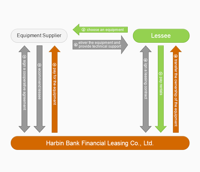 The leasing company signs a cooperative agreement with equipment supplier. The former will provide financial leasing services to the clients recommended by the latter. For the equipment supplier, the captive lease means integrating the financial lease into its marking system, which will improve the equipment supplier’s competiveness and increase its market share. The client will be able to use the equipment even when the client is undercapitalized.