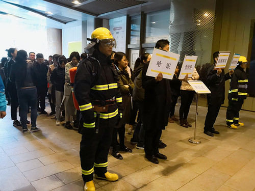 ?????? 在物業引導員和公司安全員的引導下,全體人員以消防警報和火情廣播為信號,按照疏散線路迅速撤離現場,集結到樓外安全區域。整個過程環節緊湊,井然有序。